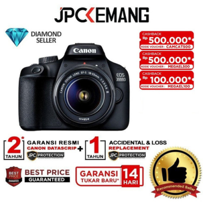 Promo Canon EOS 3000D Kit 18-55mm III (Black) GARANSI RESMI di JPCKemang Official Store. Promo khusus pengguna baru di aplikasi Tokopedia!